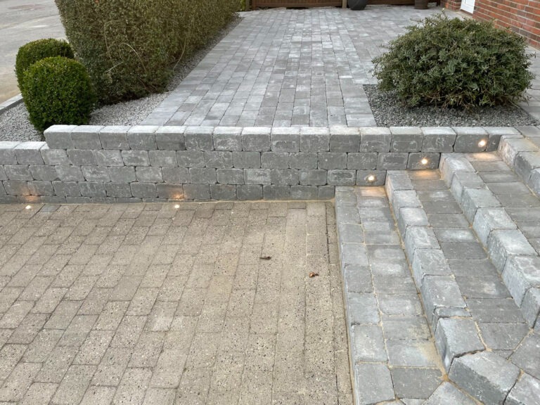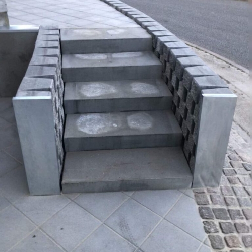 Trapper i haven kan laves i mange varianter og vi arbejder med alle typer: Granit, chaussesten, brosten, granit og beton i kombination, forarbejdede betontrapper, m.fl.